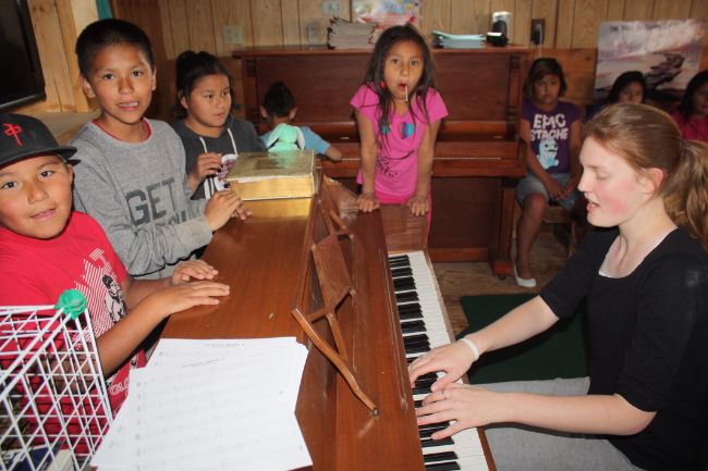 One memorable trip was a two-week visit to the Sunchild Native Reserve near Rocky Mountain House, Alberta Canada. BluegrassDaddy.com member Rodger Rinker has long-established a church and Bible school on the reserve and invited us to stay in his home for two weeks. We helped with mission operations which include caring for dozens of local children and maintaining the church and Sunday School materials. Rodger has collected many beginner-model fiddles, and so we taught a Fiddle Camp at the mission.